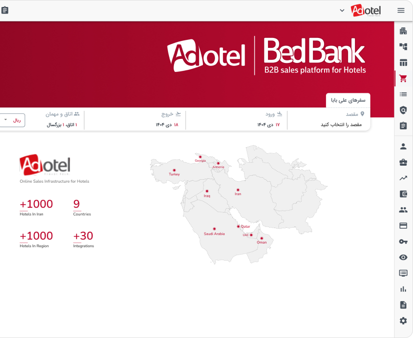 با موتور رزرو آنلاین ادوتل، مهمانها میتوانند مستقیماً از وبسایت هتل رزرو کنند. پرداخت ریالی و ارزی، اتصال به درگاههای داخلی و کارتهای بینالمللی، و نمایش نرخ و موجودی بهصورت بهروز، مسیر رزرو را سادهتر و قابلاعتمادتر میکند.