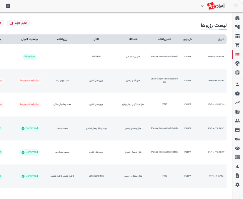 مدیریت و پیگیری رزروها
