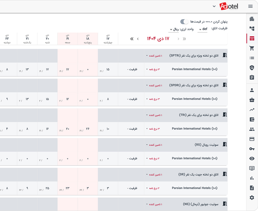 وضعیت رزرو، کانال، تامینکننده و هماهنگی با PMS را شفاف ببینید و سریع پیگیری کنید.کنترل نرخ و موجودی